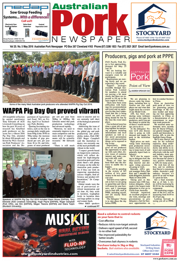 May 2016 2016By adminMay 11, 2016May 2016 edition headlines WAPPA Pig Day Out proved vibrant Producers, pigs and pork at PPPE Thanks for making me look good Pork CRC progressing on all fronts Transformational outcomes from…
