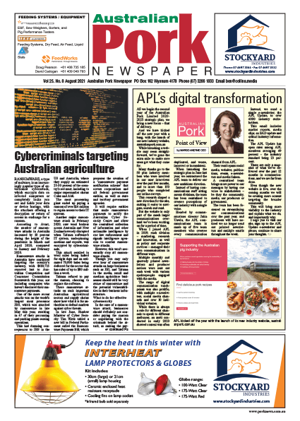 August 2021 edition headlines Cybercriminals targeting Australian agriculture APL’s digital transformation Advance notice of Australian Pork Limited AGM BE Campbell bid for Rivalea knocked down but not out Mummified pig…