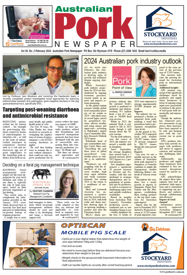 February edition headlines Targeting post-weaning diarrhoea and antimicrobial resistance Deciding on a feral pig management technique 2024 Australian pork industry outlook Applications open for John Riley Memorial Travel Award Panel…