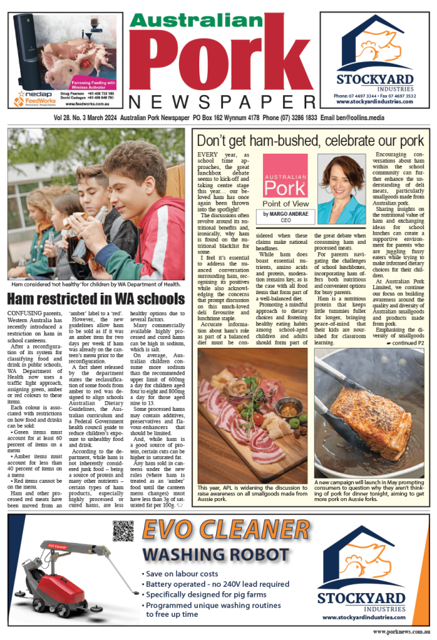 March edition headlines Ham restricted in WA schools Don’t get ham-bushed, celebrate our pork Implementing Australia’s national biosecurity strategy Miniature NIR performs well using AusScan Online Closing Loopholes Bill backroom…